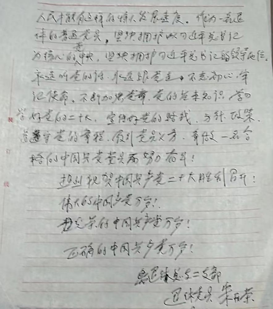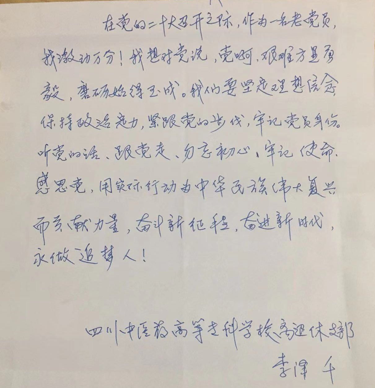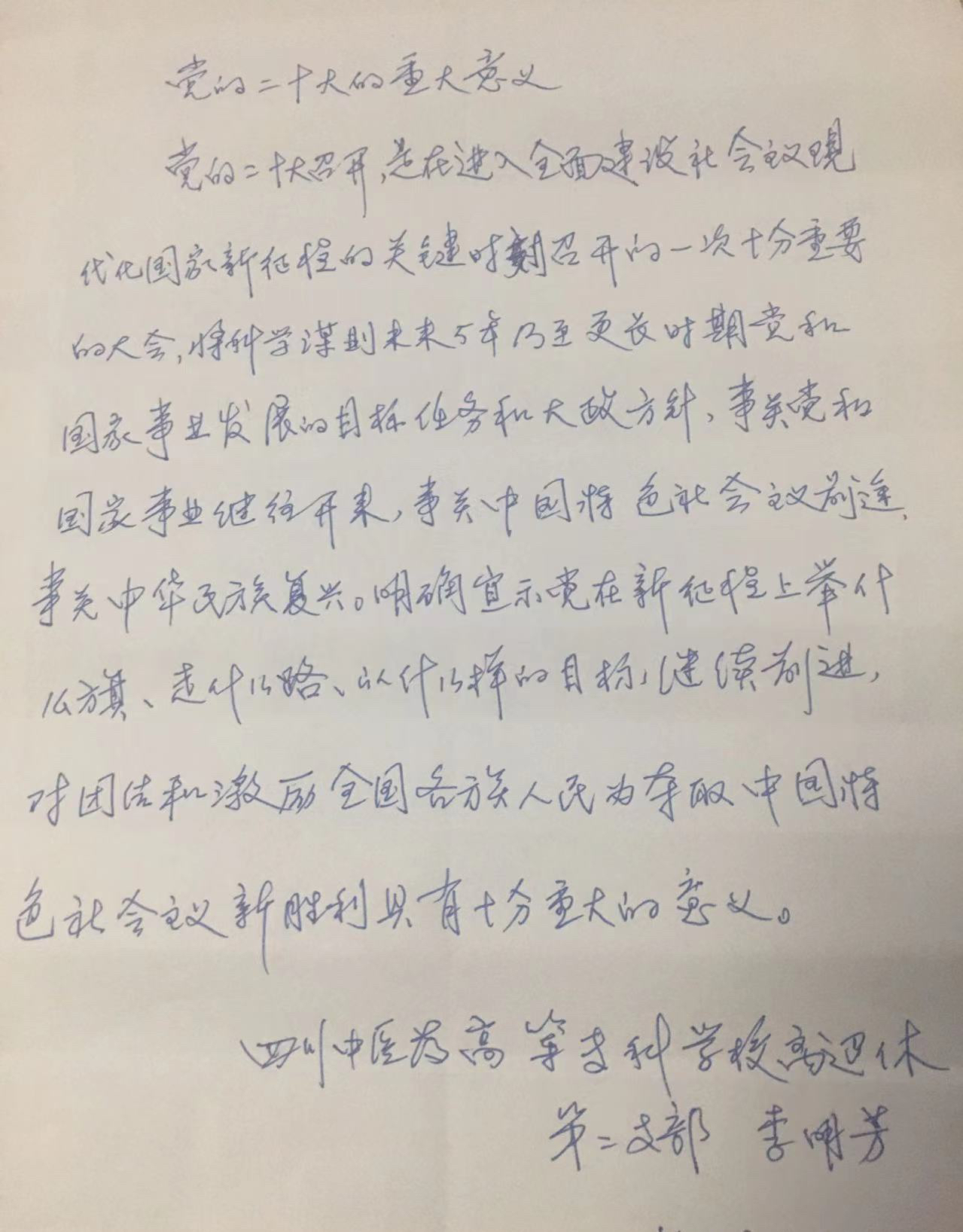 会后,学校离退休教职工通过不同方式,第一时间反馈感想体会。大家纷纷表示,聆听了习近平同志的报告非常振奋、倍受鼓舞。报告主题鲜明、内容丰富、阐述深刻、催人奋进,对团结和激励全党全军全国各族人民为全面建设社会主义现代化国家和全面推进中华民族伟大复兴的历史进程而团结奋斗,具有十分重大的里程碑意义。作为老干部、老党员,要坚决拥护党的领导,在以习近平同志为核心的党中央的领导下,永远听党话、跟党走,努力发挥政治优势、经验优势、威望优势,为全面建设社会主义现代化国家、全面推进中华民族伟大复兴作出贡献。